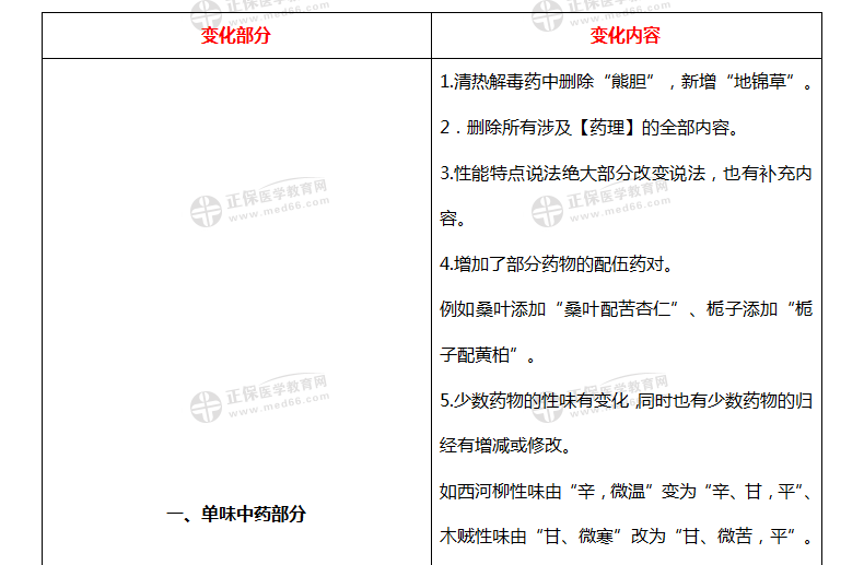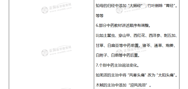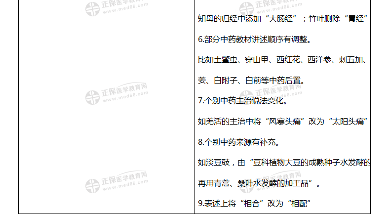 此次教材在細(xì)節(jié)變化較多,但往年的考試主體功效主治幾乎沒有變化。具體如下: