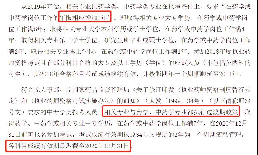 在2019年3月份,藥品監(jiān)督管理局和中國人事考試網(wǎng)發(fā)布的執(zhí)業(yè)藥師的報名條件明確表示:中專學(xué)歷考生可以在2020年12月31日前報考執(zhí)業(yè)藥師考試,也就是說今年是中專學(xué)歷考生參加執(zhí)業(yè)藥師考試的最后1次機會。