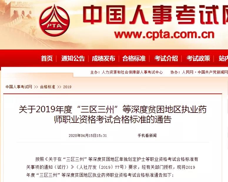 根據(jù)中國人事考試網(wǎng)公布的2019年度“三區(qū)三州”等深度貧困地區(qū)執(zhí)業(yè)藥師資格考試合格標(biāo)準(zhǔn)的通告,通告中明確了2019年“三區(qū)三州”的執(zhí)業(yè)藥師考試合格標(biāo)準(zhǔn)。