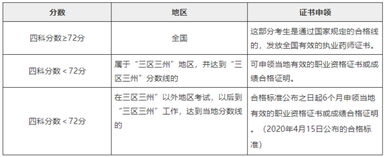 四科分?jǐn)?shù)≥72分,發(fā)放全國有效的執(zhí)業(yè)藥師證書。