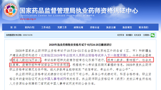 據(jù)國(guó)家藥品監(jiān)督管理局執(zhí)業(yè)藥師資格認(rèn)證中心發(fā)布的消息來(lái)看,2020年執(zhí)業(yè)藥師職業(yè)資格考試全國(guó)報(bào)名人數(shù)達(dá)74萬(wàn)余人。