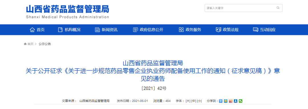 6月1日,山西藥監(jiān)局發(fā)布了《關(guān)于進(jìn)一步規(guī)范藥品零售企業(yè)執(zhí)業(yè)藥師配備使用工作的通知(征求意見稿)》(以下簡稱《通知》)。