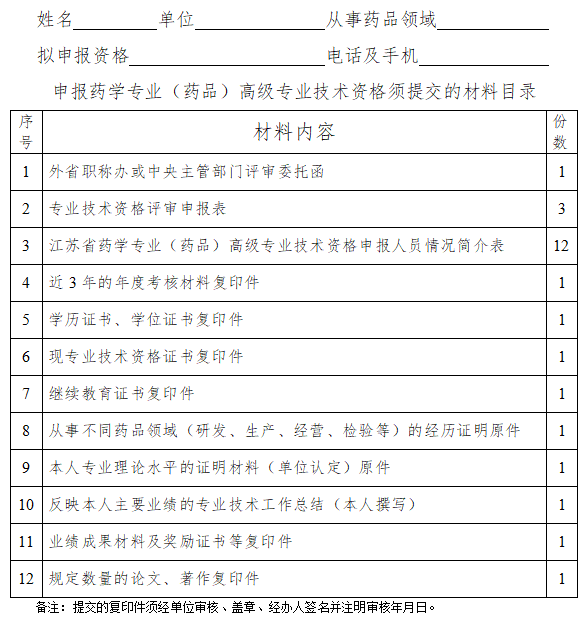 《通知》明確,申報及評審條件按照《江蘇省藥學專業(yè)(藥品)主任藥師、主任中藥師資格條件(試行)》和《江蘇省藥學專業(yè)(藥品)副主任藥師、副主任中藥師資格條件(試行)》有關(guān)規(guī)定執(zhí)行。