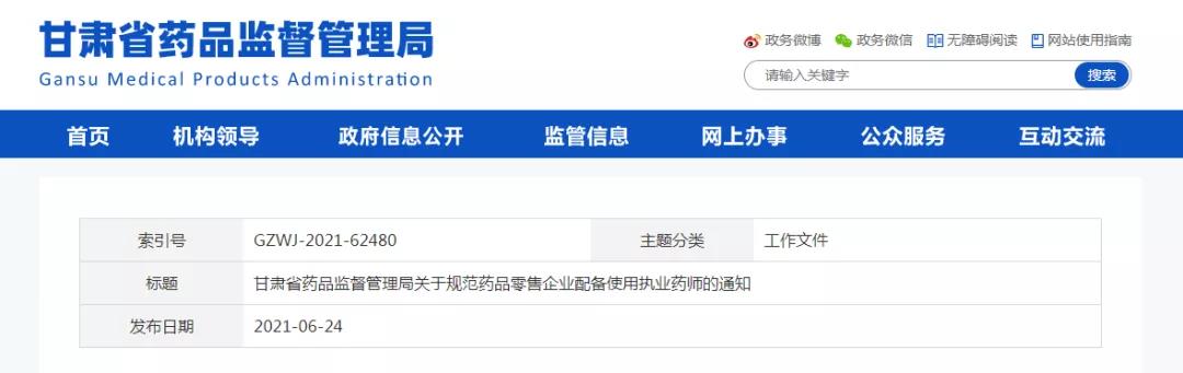 6月24日,甘肅省藥監(jiān)局發(fā)布《關(guān)于規(guī)范藥品零售企業(yè)配備使用執(zhí)業(yè)藥師的通知》(以下簡(jiǎn)稱“通知”)。