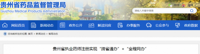 貴州省藥品監(jiān)督管理局執(zhí)業(yè)藥師注冊實現(xiàn)“跨省同辦”+“全程網(wǎng)辦”通知。執(zhí)業(yè)藥師注冊實現(xiàn)“跨省通辦”及“全程網(wǎng)辦”后,申請人可異地通過全國執(zhí)業(yè)藥師注冊平臺向貴州省藥品監(jiān)督管理局提出執(zhí)業(yè)藥師注冊申請,不再受所在地限制。