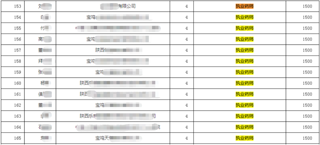2021年4月寶雞市人力資源和社會(huì)保障局發(fā)布了《關(guān)于印發(fā)寶雞市失業(yè)保險(xiǎn)支持參保職工提升職業(yè)技能實(shí)施細(xì)則的通知》,通知內(nèi)容提到對(duì)對(duì)張某等442名企事業(yè)單位職工給予技術(shù)技能提升補(bǔ)貼,其中執(zhí)業(yè)藥師資格有13名,現(xiàn)公示如下: