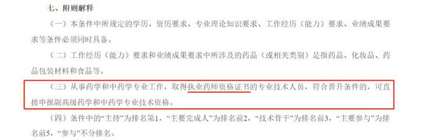 申報(bào)條件六:取得執(zhí)業(yè)藥師職業(yè)資格的,可認(rèn)定為具備主管藥師或主管中藥師職稱。