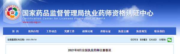 2021年8月執(zhí)業(yè)藥師注冊情況