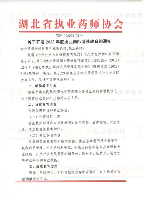 湖北省關(guān)于開展2023年度執(zhí)業(yè)藥師繼續(xù)教育的通知