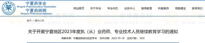 關(guān)于開展寧夏地區(qū)2023年度執(zhí)(從)業(yè)藥師、專業(yè)技術(shù)人員繼續(xù)教育學(xué)習(xí)的通知