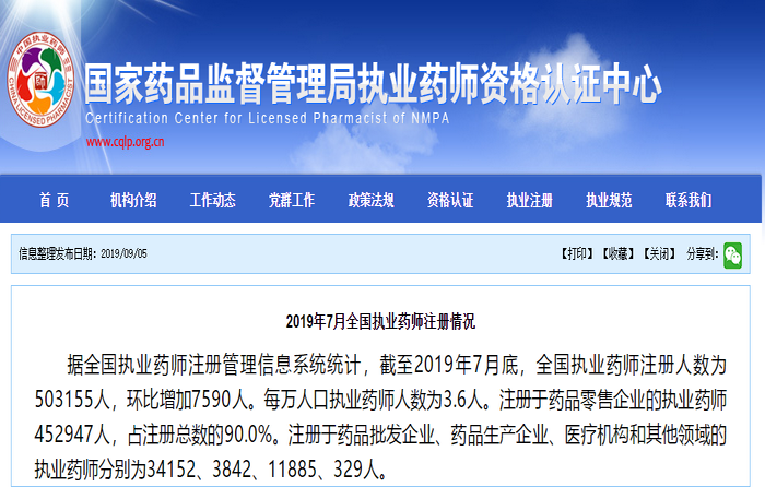 國家藥品監(jiān)督管理局公布了2019年7月全國執(zhí)業(yè)藥師注冊情況,以下是具體內(nèi)容。