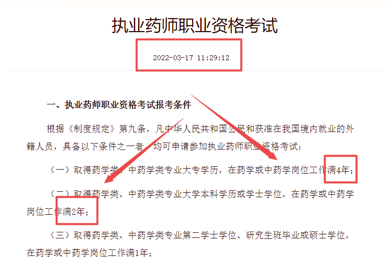 中國人事考試網(wǎng)近期發(fā)布通知,更新了2022年執(zhí)業(yè)藥師考試報名條件,明確提出2022年執(zhí)業(yè)藥師考試報名條件中部分工作年限減少一年,具體通知如下:
