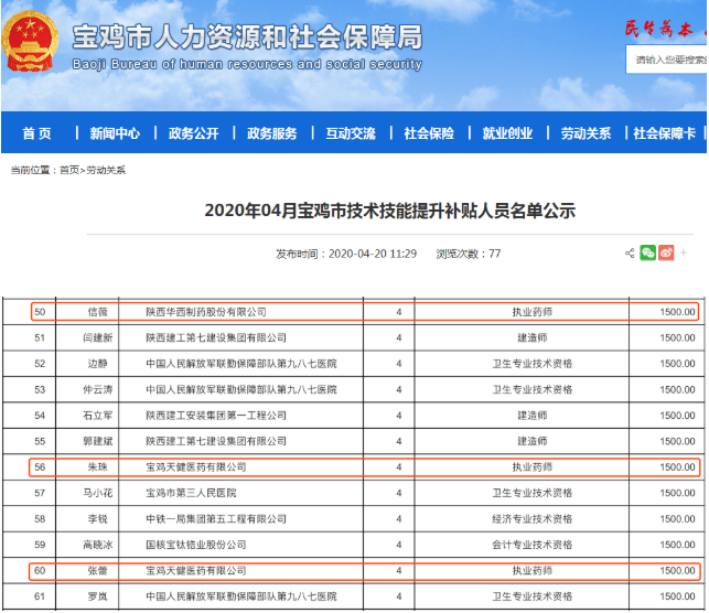 2020年4月下旬,寶雞市人力資源和社會保障局發(fā)布了《2020年4月寶雞市技術(shù)技能提升補(bǔ)貼人員名單公示》,執(zhí)業(yè)藥師也在其中,執(zhí)業(yè)藥師技術(shù)技能提升補(bǔ)貼可以 領(lǐng)取1500元!