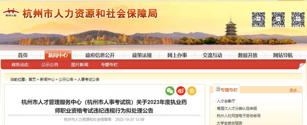 根據(jù)《專業(yè)技術(shù)人員資格考試違紀(jì)違規(guī)行為處理規(guī)定》(人力資源和社會保障部令第31號)第十七條規(guī)定,現(xiàn)將2023年度執(zhí)業(yè)藥師職業(yè)資格考試中已認(rèn)定違紀(jì)違規(guī)考生的考試違紀(jì)違規(guī)行為擬處理意見公告如下。考生如對所認(rèn)定的違紀(jì)違規(guī)事實(shí)及擬處理意見存在異議,可在公告之日起5個工作日內(nèi)提出陳述和申辯。逾期未提出陳述申辯的,將依法依規(guī)作出正式處理決定。