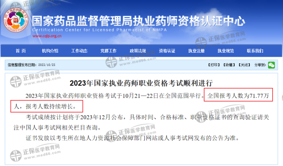 近日,執(zhí)業(yè)藥師資格認(rèn)證中心發(fā)布了一則通知,其中對(duì)2023年執(zhí)業(yè)藥師考試報(bào)考人數(shù)做了詳細(xì)說(shuō)明,2023年執(zhí)業(yè)藥師全國(guó)報(bào)考人數(shù)為71.77萬(wàn),報(bào)考人數(shù)持續(xù)增長(zhǎng)!