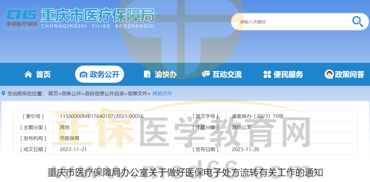 重慶醫(yī)保局發(fā)文:規(guī)范電子處方流轉(zhuǎn),執(zhí)業(yè)藥師價(jià)值凸顯!