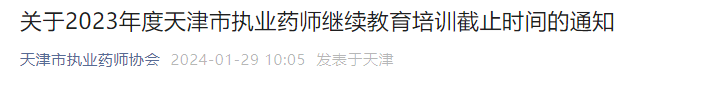【天津市】2023年執(zhí)業(yè)藥師繼續(xù)教育培訓(xùn)截止時間:2月10日