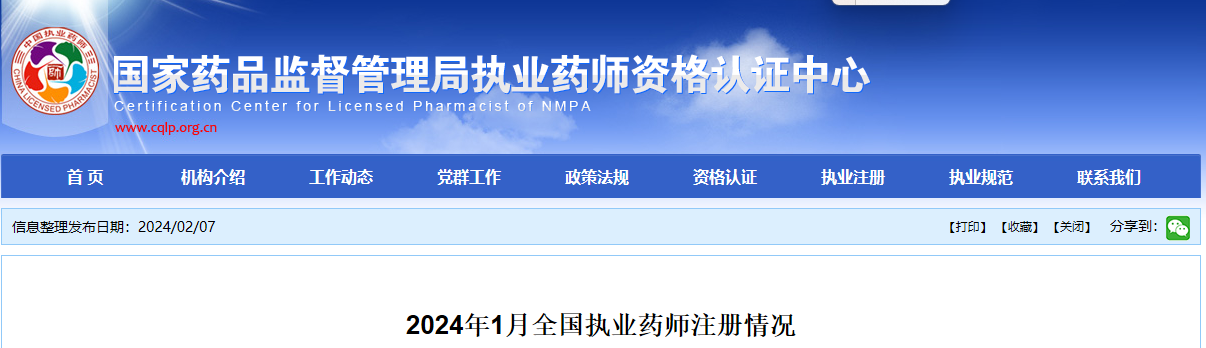 2024年1月全國執(zhí)業(yè)藥師注冊:環(huán)比增加7646人
