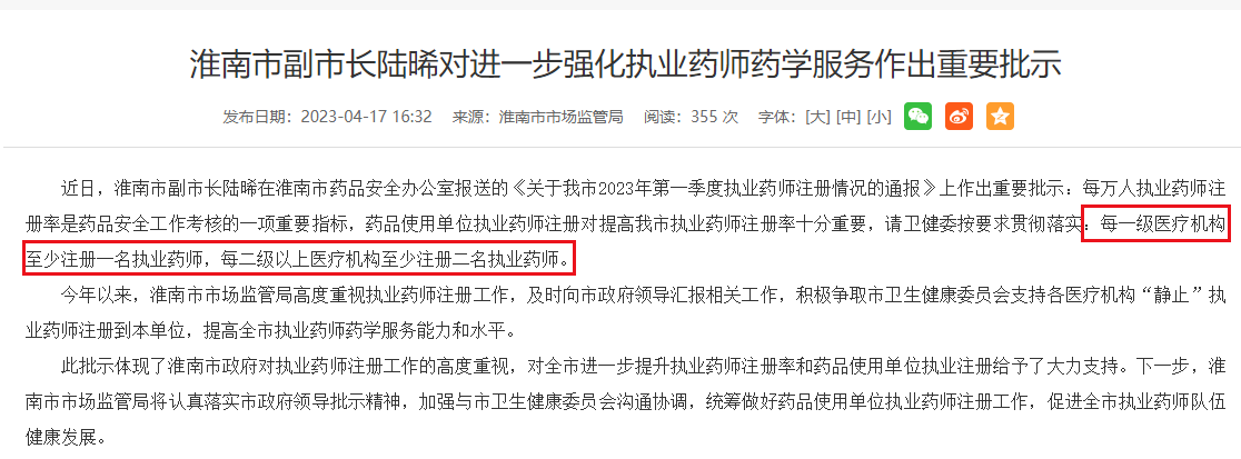 答案是肯定的,此前淮南市官方就發(fā)布通知:醫(yī)療機(jī)構(gòu)也需配執(zhí)業(yè)藥師。(具體以各地最新政策文件為準(zhǔn))