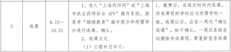 (2)參加繼續(xù)教育的時(shí)間和學(xué)時(shí)規(guī)定:執(zhí)業(yè)藥師應(yīng)當(dāng)自取得執(zhí)業(yè)藥師職業(yè)資格證書的次年起開始參加繼續(xù)教育。每年參加的繼續(xù)教育不少于90學(xué)時(shí)。其中專業(yè)科目一般不少于總學(xué)時(shí)的三分之二。執(zhí)業(yè)藥師參加繼續(xù)教育實(shí)行學(xué)時(shí)登記管理,不再實(shí)行學(xué)分制。