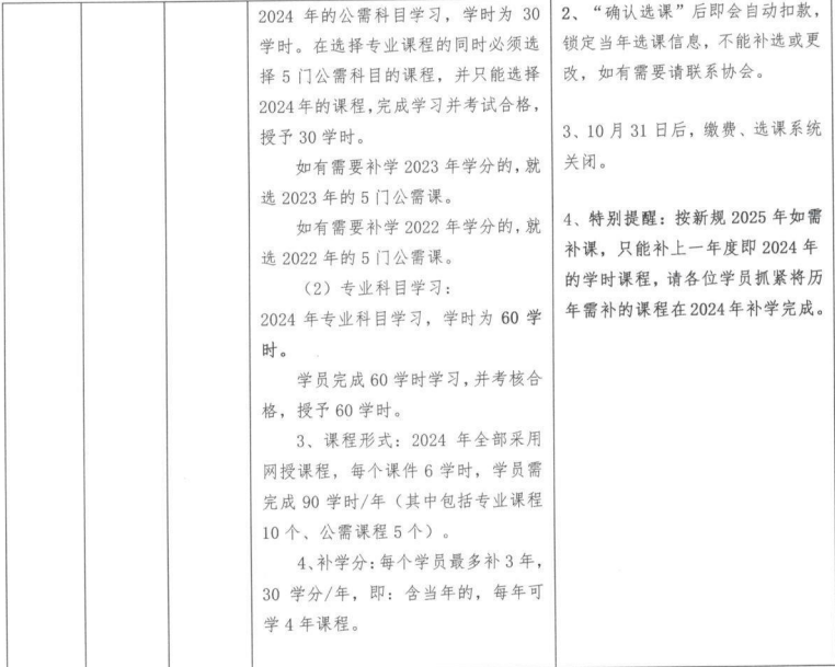 特別提醒:2025年如需補(bǔ)課,只能補(bǔ)上一年度即2024的學(xué)時(shí)課程。請各位學(xué)員根據(jù)此提醒抓緊將歷年需補(bǔ)的課程在2024年補(bǔ)學(xué)完成。