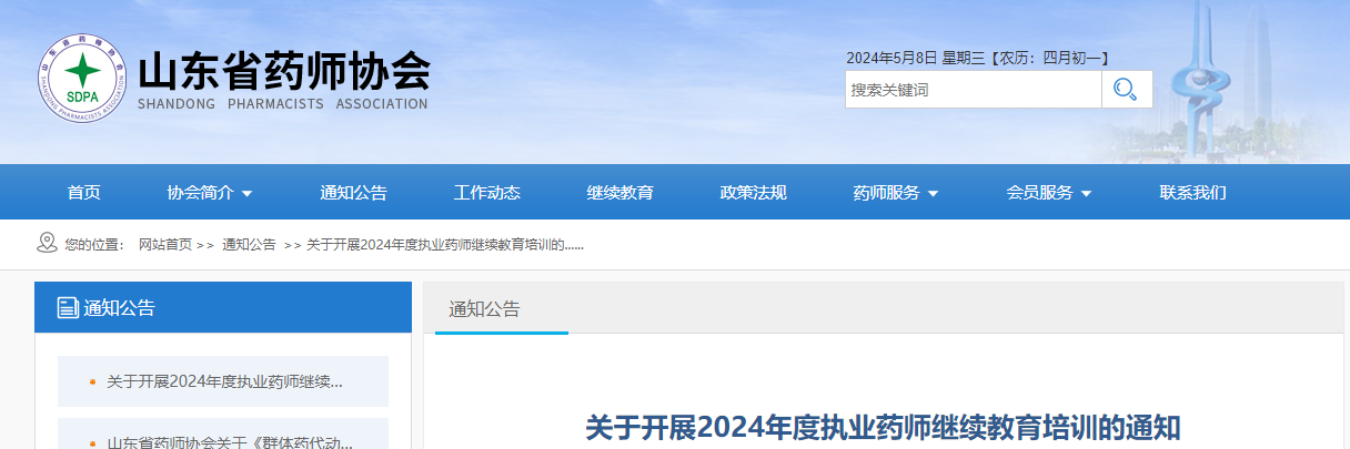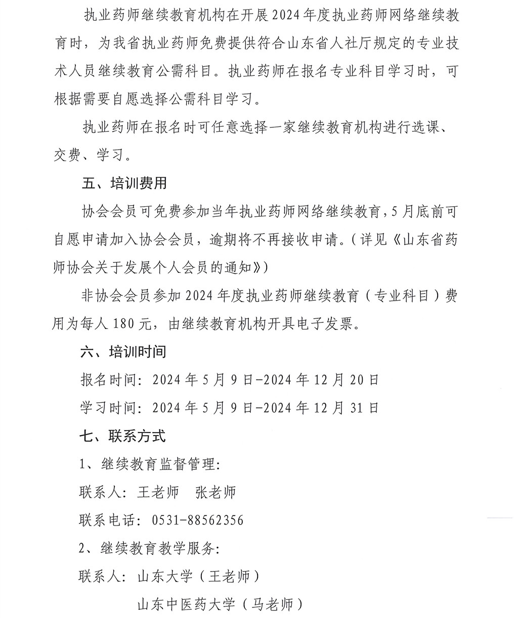 【山東】關(guān)于開展2024年度執(zhí)業(yè)藥師繼續(xù)教育培訓(xùn)的通知