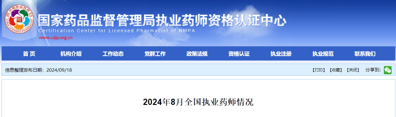 2024年8月全國執(zhí)業(yè)藥師注冊(cè)人數(shù)803890人