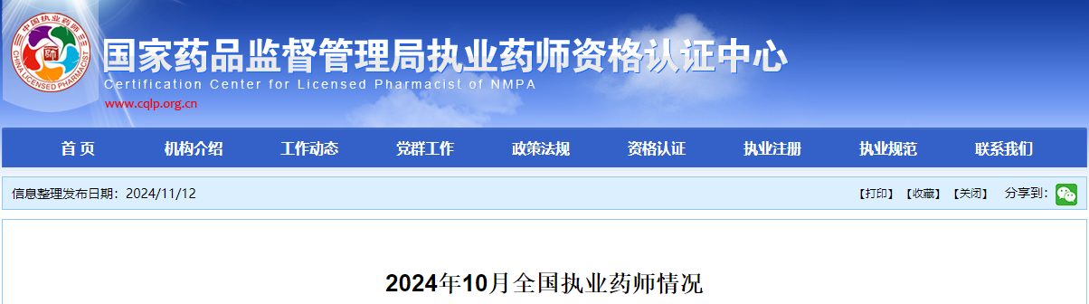 2024年10月全國(guó)執(zhí)業(yè)藥師注冊(cè)人數(shù)環(huán)比增加3513人
