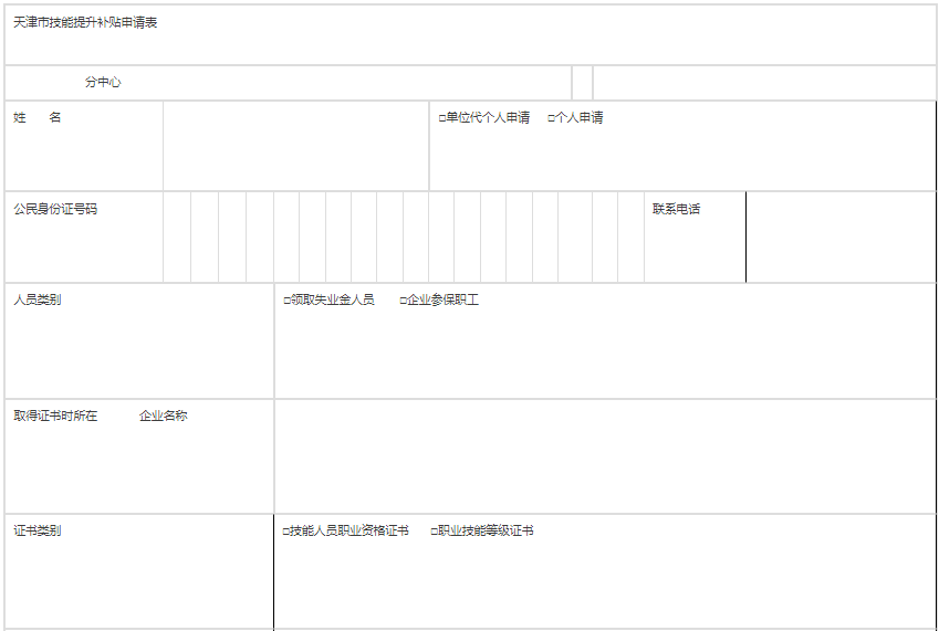 附件:天津市技能提升補(bǔ)貼申請表
