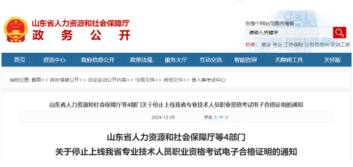通知中明確:為保證專業(yè)技術(shù)人員職業(yè)資格電子證書的權(quán)威性和唯一性,自本通知印發(fā)之日起,停止上線我省專業(yè)技術(shù)人員職業(yè)資格考試電子合格證明,不再提供合格證明查詢下載服務(wù)。22項專業(yè)技術(shù)人員職業(yè)資格紙質(zhì)證書仍按原渠道制發(fā)。