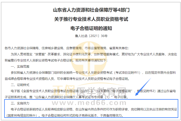 小編找到了山東《關(guān)于專業(yè)技術(shù)人員職業(yè)資格考試電子合格證明有關(guān)事項的說明》,其中明確:電子合格證明表明持證人員取得相應(yīng)職業(yè)資格,在山東省內(nèi)符合條件的可作為職稱評審、崗位聘用以及執(zhí)業(yè)注冊的有效憑證。