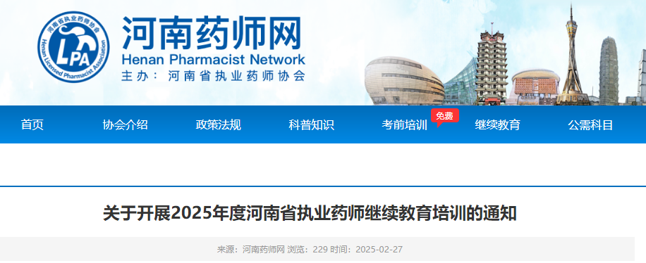 【河南】2025年度執(zhí)業(yè)藥師繼續(xù)教育培訓(xùn)的通知