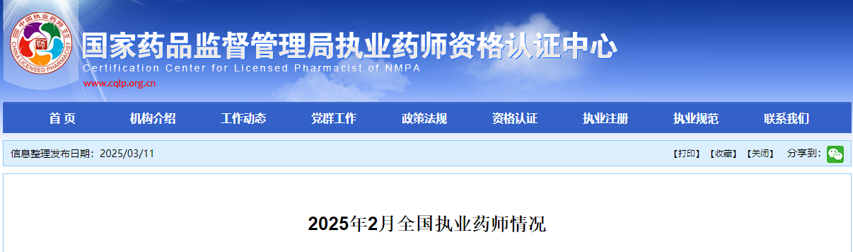 截至2025年2月底,全國(guó)擁有執(zhí)業(yè)藥師837,416人,環(huán)比增加23,310人,平均每萬人口擁有執(zhí)業(yè)藥師5.8人。