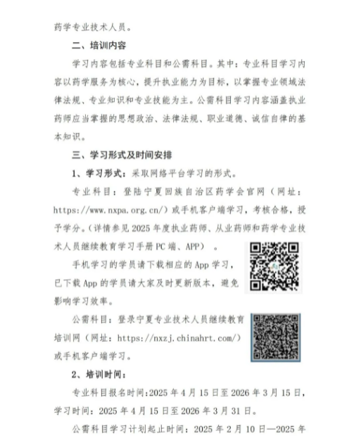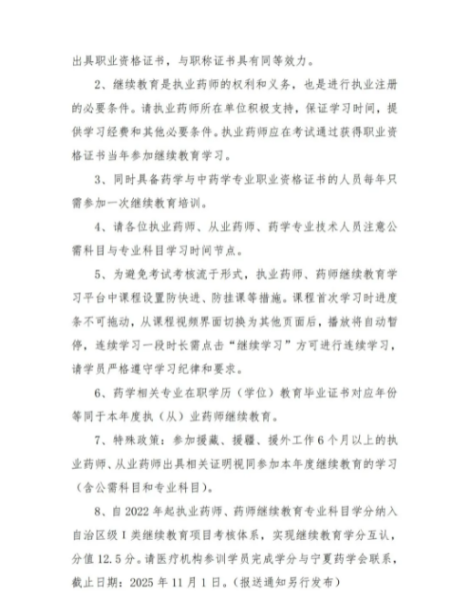 【寧夏】2025年度執(zhí)業(yè)藥師、從業(yè)藥師和藥學(xué)專(zhuān)業(yè)技術(shù)人員繼續(xù)教育的通知