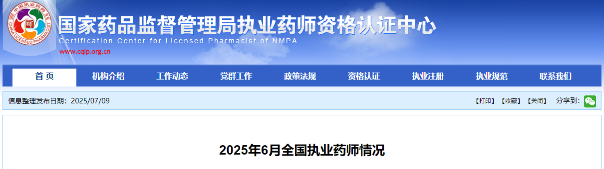 2025年6月全國(guó)執(zhí)業(yè)藥師情況