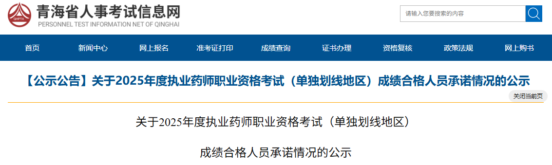 【青海】關(guān)于2025年執(zhí)業(yè)藥師考試(單獨(dú)劃線地區(qū))成績合格人員承諾情況的公示