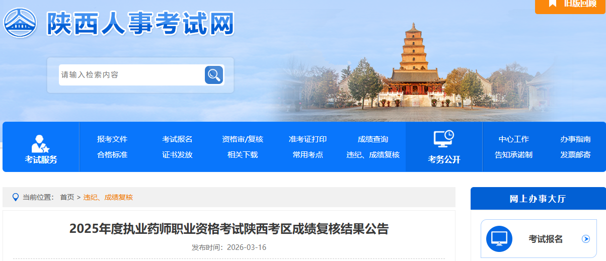 【陜西】2025年執(zhí)業(yè)藥師職業(yè)資格考試陜西考區(qū)成績復(fù)核結(jié)果公告