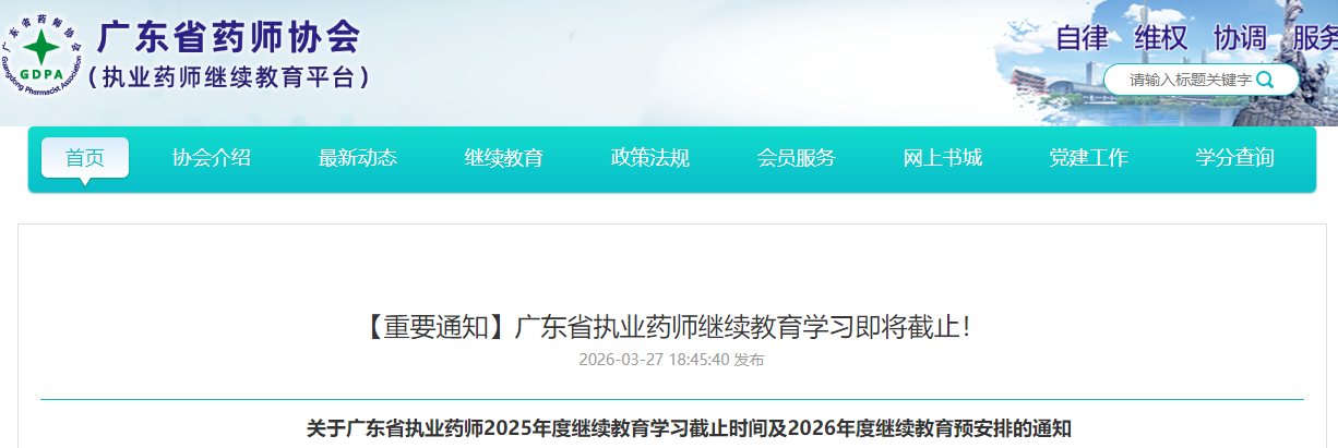 【廣東】2025年執(zhí)業(yè)藥師繼續(xù)教育學(xué)習(xí)截止時(shí)間及2026年度繼續(xù)教育預(yù)安排的通知