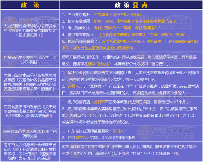 一、執(zhí)業(yè)藥師官方政策一覽表
