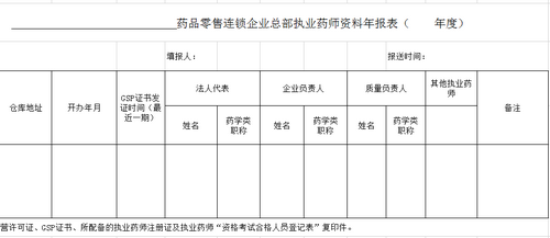 各藥品零售連鎖企業(yè)按要求填報《藥品零售連鎖企業(yè)總部執(zhí)業(yè)藥師資料年報表》,并按表格備注要求提供相關(guān)證照復(fù)印件,具體填報表格如下: