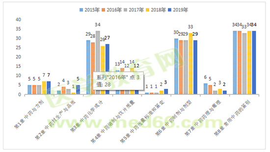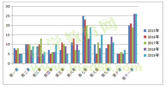 通過對試題的梳理,2015-2019年的各章節(jié)分值對比如下:
