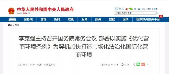11月27日,國(guó)務(wù)院總理李克強(qiáng)召開國(guó)務(wù)院常務(wù)會(huì)議,部署以實(shí)施《優(yōu)化營(yíng)商環(huán)境條例》為契機(jī),加快打造市場(chǎng)化法治化國(guó)際化營(yíng)商環(huán)境,更大力度為各類市場(chǎng)主體投資興業(yè)破堵點(diǎn)、解難題。