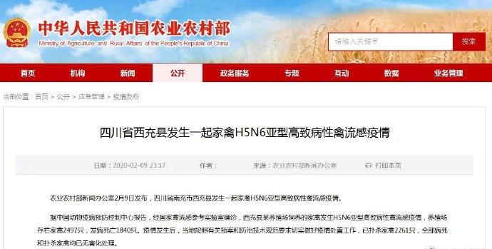 最新消息,農(nóng)業(yè)農(nóng)村部新聞辦公室2月9日發(fā)布,四川省南充市西充縣發(fā)生一起家禽H5N6亞型高致病性禽流感疫情。對于正處疫情高度緊張的現(xiàn)在,很多人表示,2020年真的太難了!