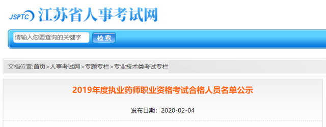 江蘇省人力資源和社會保障廳官網(wǎng)發(fā)布《2019年度執(zhí)業(yè)藥師職業(yè)資格考試合格人員名單公示》,共6118人。