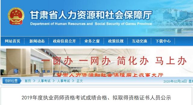 甘肅省2019年度執(zhí)業(yè)藥師資格考試成績合格、擬取得資格證書人員予以公示,共2968人。