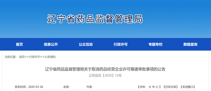 開藥店,可直接申請(qǐng)發(fā)證 3月26日,遼寧省藥監(jiān)局發(fā)布了《關(guān)于取消藥品經(jīng)營(yíng)企業(yè)許可籌建審批事項(xiàng)的公告》(以下簡(jiǎn)稱《公告》)。