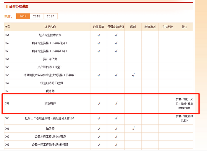 中國人事考試網(wǎng)更新執(zhí)業(yè)藥師證書辦理進度!快查詢!