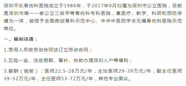 深圳平樂骨傷科醫(yī)院2020年招聘公告