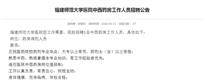其實醫(yī)療事業(yè)單位,特別是三甲名院,對招聘醫(yī)師的專業(yè)要求還是非常高的,畢竟要在一線給患者看診,而對護士、藥房工作人員、行政人員的專業(yè)要求就沒那么高了,不過大部分還是要求??茖W歷以上。