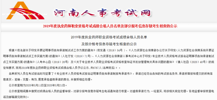 終于等到你!河南省人事考試網(wǎng)發(fā)布公示《2019年度執(zhí)業(yè)藥師職業(yè)資格考試成績合格人員名單及部分報考信息存疑考生核查的公示 》,河南省2019年執(zhí)業(yè)藥師考試成績合格人員名單公示終于出來了!具體公告如下!考生速查?。?span style="color: rgb(255, 0, 0);">文章最后附有全國2019年執(zhí)業(yè)藥師考試各省市合格名單!)
